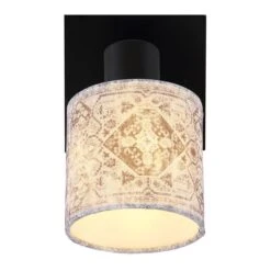 Bestehend aus einem quadratischen Wandschild und einem detailverliebten Textilschirm mit einem Durchmesser von knapp 18 cm wird er zum Blickfang jeder Ihrer Räume. Ausgestattet mit einer E14 Fassung können Sie Ihre Lichtquelle bis zu einer maximalen Leistung von 25 Watt, frei wählen und ermöglicht Ihnen Lichtfarbe und Helligkeit individuell zu bestimmen.