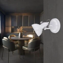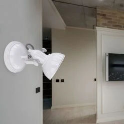 Sie lässt sich stilgerecht in jedes moderne Wohnambiente einfügen und besticht durch eine zeitlose Optik. Durch ein eingebautes Gelenk lässt sich der Spot in verschiedenen Winkeln ausrichten und drehen. So haben Sie ein auf Ihre persönlichen Wünsche abgestimmtes Deckenlicht, mit dem Sie sowohl eine indirekte Beleuchtung einstellen können oder auch eine Zimmerecke bzw. ein Objekt im Raum gezielt beleuchten und anstrahlen können. Die Leuchte harmoniert in zeitlos elegantem weiß und fügt sich problemlos in verschiedene Einrichtungsstile ein.