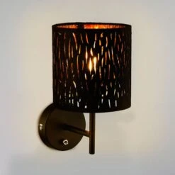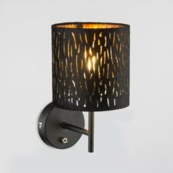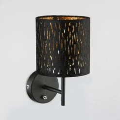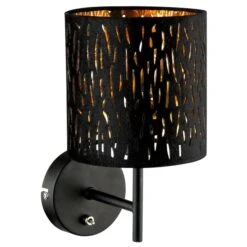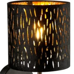 Mit dieser eleganten und modernen Wandleuchte aus der Serie TUXON, werden leuchtende Akzente gesetzt. Die Lampe eignet sich super als Zusatzbeleuchtung für ein Schlafzimmer oder für andere Räume. Der Lampenschirm ist aus schwarzem Samt und besitzt Dekorstanzungen, wodurch das Licht beeindruckend reflektiert wird. Im Inneren ist die Lampe goldfarben, dadurch wirkt das Licht sehr angenehm warm. An der Unterseite der Wandhalterung befindet sich ein Kippschalter, dadurch können Sie die Leuchte zusätzlich ein- und ausschalten. Die Wandleuchte verfügt über eine E14-Fassung, Sie haben die Möglichkeit das Leuchtmittel (max.40 Watt), sowie Lichtfarbe und Lichtstärke zu bestimmen.