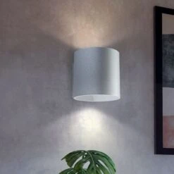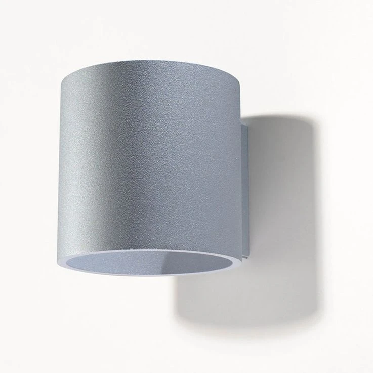 Diese moderne nach oben und unten leuchtende Wandlampe ist aus grauem Aluminium gefertigt. Die runde Innenleuchte kann durch das schlichte Design in jedem Wohnraum mit modernem Einrichtungsstil integriert werden. Dadurch, dass das Licht nach oben und nach unten abgegeben wird, entsteht ein toller Lichteffekt an der Wand.