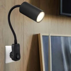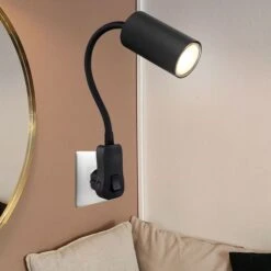 Wandleuchte, Schwarz, Flexibel Verstellbar, Stromkabel, H 43 Cm