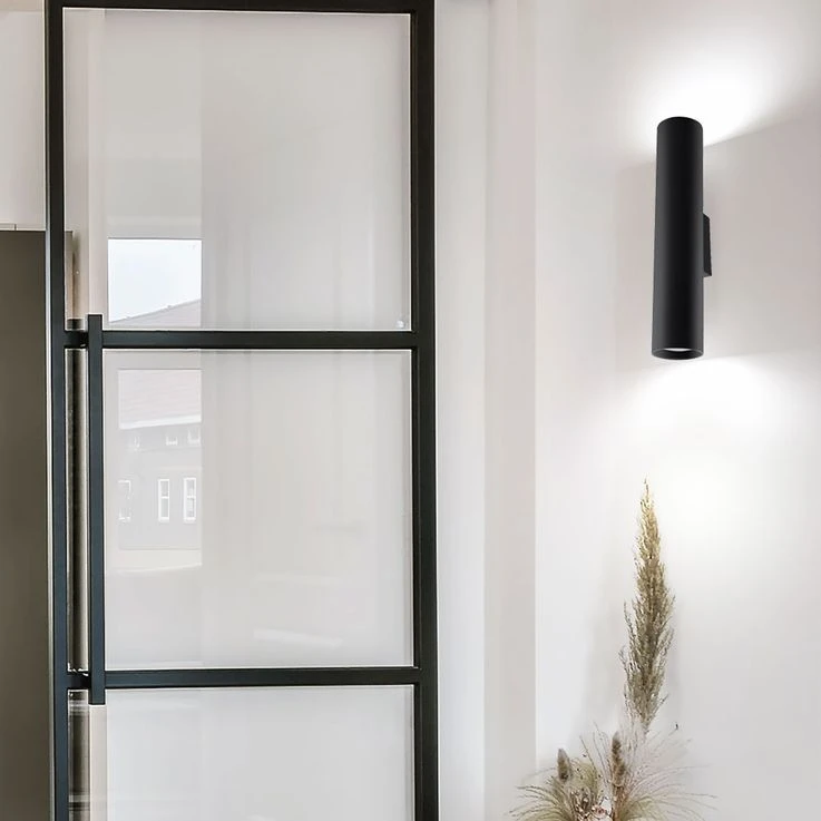 Die Lampe hat einen eleganten schwarzen Farbton. Durch das schlichte Design können Sie die Wandleuchte in jedem Raum und jedem Wohn- und Einrichtungsstil integrieren. Das Licht strahlt oben und unten aus der Lampe raus.