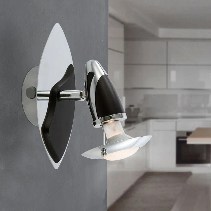 Dieser ein strahlige Spot besticht durch schwarze Eleganz in einem Mantel aus Chrom.