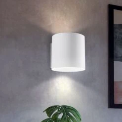 Die Lampe hat einen eleganten weißen Farbton. Durch das schlichte Design können Sie die Wandleuchte in jedem Raum und jeden Wohn- und Einrichtungsstil integrieren. Das Licht wird nach oben und nach unten abgegeben und wirft somit einen tollen Lichteffekt an die Wand.