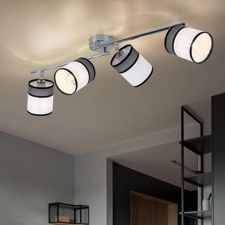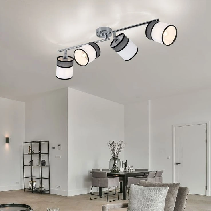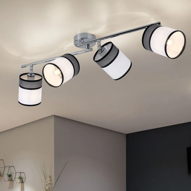 Diese Spotleuchte DAVIE geht mit dem Zuhause eine attraktive Liaison ein. Die Vorzüge von klassischen Spots, wie eine punktgenaue Ausleuchtung, kombinieren sich mit wohnlichen Aspekten durch die modernen, zweifarbigen Stoffschirmchen.